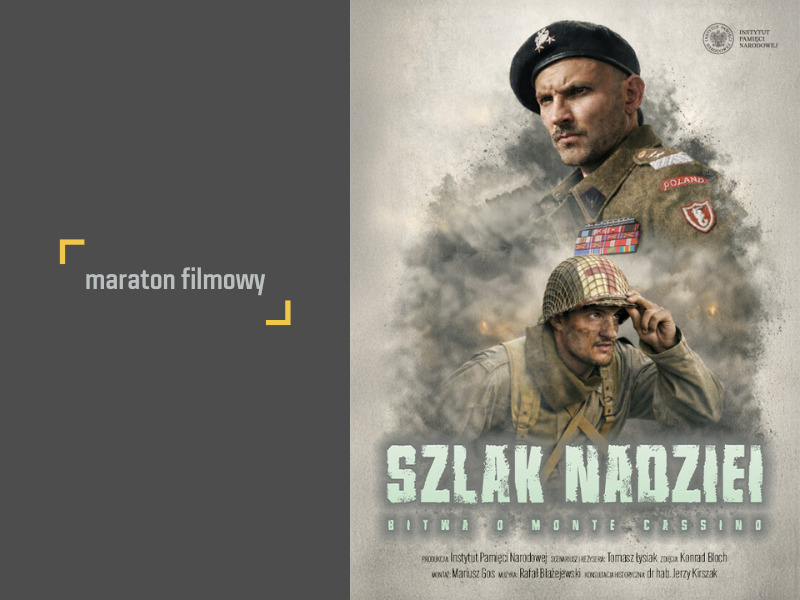 W sali konferencyjnej odbędzie się maraton filmowy serialu „Szlak nadziei. Bitwa o Monte Cassino” w reżyserii Tomasza Łysiaka, produkcji Biura Edukacji Narodowej IPN. Odwiedzający będą mogli obejrzeć wszystkie 5 odcinków, poświęconych udziałowi Polaków w bitwie o Monte Cassino i losom żołnierzy 2. Korpusu Polskiego gen. Władysława Andersa. Serial został oparty na świadectwach weteranów, potomków bohaterów, mieszkańców Włoch i na badaniach historyków. Wykorzystano archiwalia i oryginalne plenery.