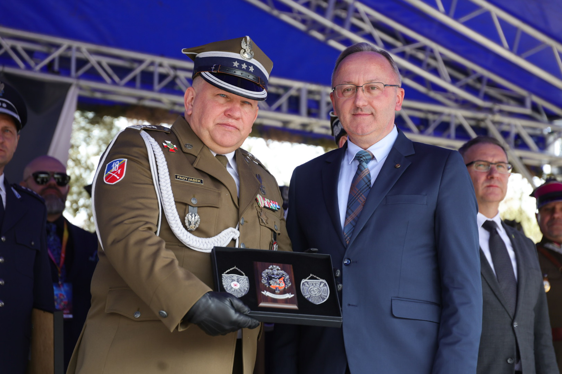 Gdzie polski mundur, tam wolna i niepodległa Rzeczpospolita. Na zdj. od lewej: dowódca 18. Brygady Zmotoryzowanej płk Zbigniew Padyjasek i zastępca prezesa IPN dr hab. Karol Polejowski – Kraśnik, 15 kwietnia 2026. Fot. Dariusz Skrzyniarz (IPN)