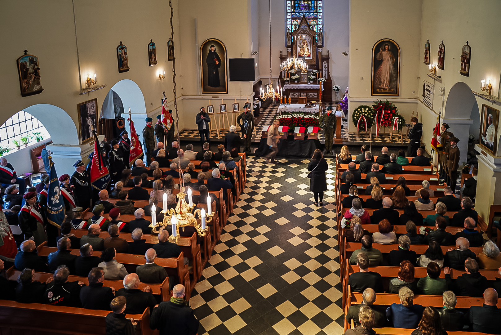 Ceremonia pogrzebowa rozpoczęła się od Mszy św. w kościele pw. św. Wojciecha w Zagrobie w intencji odnalezionych i zidentyfikowanych przez Instytut Pamięci Narodowej żołnierzy. W uroczystości wzięli udział: Adam Siwek, dyrektor Biura Upamiętniania Walk i Męczeństwa IPN, Jacek Pawłowicz, zastępca dyrektora Muzeum Żołnierzy Wyklętych i Więźniów Politycznych PRL oraz przedstawiciele Biura Poszukiwań i Identyfikacji IPN.