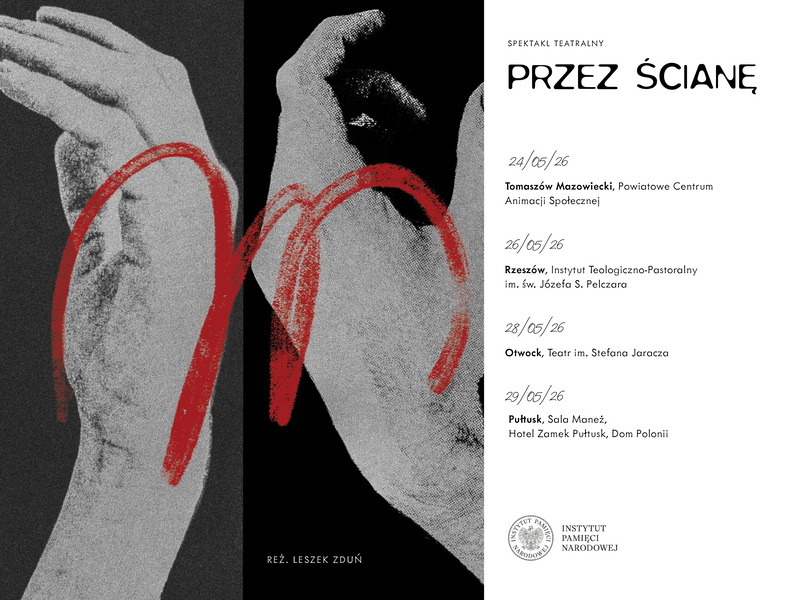 - 26 maja 2026 r., godz. 19.00, Rzeszów, sala widowiskowa Instytutu Teologiczno-Pastoralnego im. św. Józefa Sebastiana Pelczara, ul. Witolda 11A, bezpłatne wejściówki do odbioru w sekretariacie Instytutu Teologiczno-Pastoralnego w godz. 9.00-13.00 lub rezerwacja online: wydarzeniakulturalne@ipn.gov.pl