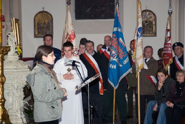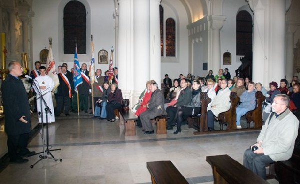 Uroczystości rozpoczęła msza św., podczas której ks. kanonik Tadeusz Magas wygłosił homilię, w której przedstawił życie i działalność Sługi Bożego ks. Jerzego Popiełuszki. Po mszy św. do licznie zgromadzonych wiernych zwrócił się dyrektor Oddziału IPN w Poznaniu Ireneusz Adamski z zaproszeniem do obejrzenia prezentowanej w kościele wystawy, poświęconej heroicznemu kapłanowi. Wskazał też, że wystawa jest częścią szczególnego cyklu wystaw IPN, który otworzyła wystawa „Wielkopolska w cieniu WRON-y” o stanie wojennym w Wielkopolsce oraz towarzysząca jej wystawa „Ofiary stanu wojennego”. Pośród upamiętnionych ofiar stanu wojennego byli również duchowni, m.in. ojciec Honoriusz Kowalczyk OP z poznańskiego klasztoru dominikanów oraz ks. Jerzy Popiełuszko. Wystawy te były prezentowane w 25. rocznicę stanu wojennego. W roku bieżącym poznański IPN pokazał w Poznaniu wystawę poświęconą ojcu Honoriuszowi, a dzisiaj otwiera wystawę poświęconą ks. Jerzemu Popiełuszce, przygotowaną przez Oddział IPN w Białymstoku. Dyrektor Adamski przypomniał postać protestanckiego pastora Dietriha Bonhofera, który w III Rzeszy w swoich kazaniach demaskował moralne zło faszyzmu i hitleryzmu oraz samego Hitlera. Zapłacił za to uwięzieniem i śmiercią. W Polsce w latach 70. duży wpływ na kształtowanie postaw młodzieży związanej z demokratyczną opozycją miały książki wydane w bibliotece „Więzi”: Hanny Morawskiej „Chrześcijanin w III Rzeszy” i D. Bonhofera „Wybór pism”. W latach 80. w Polsce podobnie dużą rolę w kształtowaniu postaw nie tylko młodzieży odegrały wydawane w podziemiu kazania ks. Jerzego Popiełuszki. To właśnie za te słowa prawdy, uznane przez rządzących za śmiertelne niebezpieczeństwo dla reżimu, ks. Jerzy został zamordowany. W kilka lat później, z tych samych powodów, w ZSRR został zamordowany siekierą przez „nieznanych sprawców” wybitny prawosławny duchowny i teolog Aleksander Mień. Rosjanie nie mieli wątpliwości, kim byli ci „nieznani sprawcy”. Zofia Fenrych, historyk z OBEP w Poznaniu, przedstawiła ideę wystawy o ks. Jerzym. Na koniec obecni kapłani, goście i wierni zgromadzeni w kościele przeszli pod pomnik zamordowanego 24 lata temu kapłana „Solidarności”. Po modlitwach w intencji Sługi Bożego ks. Jerzego delegacje, w tym poznańskiego IPN, złożyły pod pomnikiem kwiaty.