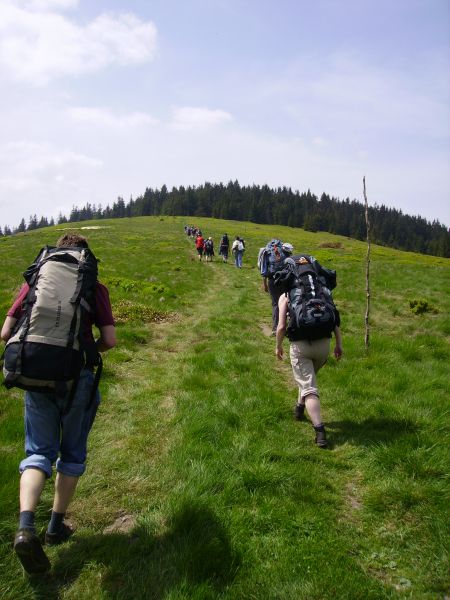 Celem było schronisko turystyczne PTTK na przełęczy Przegibek. By do niego dojść, pokonać trzeba było w majowym upale dwugodzinne, strome miejscami podejście na Halę Rycerzową, gdzie chwilę odpoczęliśmy przy urokliwej bacówce. Następnie szlakiem przez Wielką Rycerzową doszliśmy do celu naszej wędrówki. Po obiedzie i krótkim odpoczynku odbyły się przewidziane w programie rajdu konkurencje: strzelanie z broni pneumatycznej, rzut granatem, bieg na orientację oraz konkurs wiedzy historycznej. Tak jak i poprzednio, ogromną pomocą w przygotowaniu wszystkiego służyli nam zaprzyjaźnieni harcerze z Niezależnej Drużyny Harcerzy Starszych z Rybnika-Boguszowic.