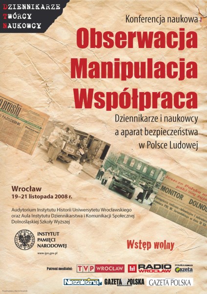 Konferencja naukowa „Obserwacja, manipulacja, współpraca. Dziennikarze i naukowcy a aparat bezpieczeństwa w Polsce Ludowej” – Wrocław, 19–21 listopada 2008 r.