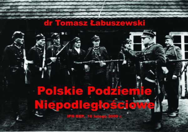Poniedziałki z najnowszą historią Polski: wykład dr. Tomasza Łabuszewskiego „Polskie Podziemie Niepodległościowe” – Warszawa, 16 lutego 2009