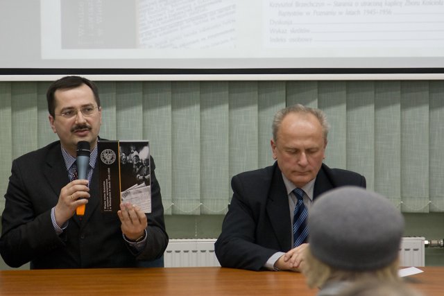 Dr Konrad Białecki przybliżył zebranym pracę powstałą pod jego redakcją „Władze wobec Kościołów i związków wyznaniowych w Wielkopolsce w latach 1945–1956”. Książka ta jest drugim już tomem „Studiów i materiałów poznańskiego IPN”. Jej cel to prześledzenie słabo dotąd zbadanego zagadnienia, jakim były działania podejmowane przez różne organy władz partyjno-państwowych „na odcinku wyznaniowym” w Wielkopolsce w latach 1945–1956.