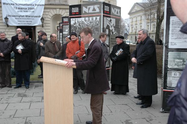 Instytut Pamięci Narodowej Oddział w Łodzi oraz Niezależne Zrzeszenie Studentów Uniwersytetu Warszawskiego zapraszają na wystawę „Młodzież z partią się … rozliczy! Niezależne Zrzeszenie Studentów 1980–1989”. Ekspozycja została otwarta 12 marca br. na placu przed Biblioteką Uniwersytetu Warszawskiego (ul. Krakowskie Przedmieście 26/28). Uroczystość otworzył Michał Gawriłow, przedstawiciel NZS Uniwersytetu Warszawskiego, a następnie przybyłych gości w imieniu dr. hab. Janusza Kurtyki, prezesa Instytutu Pamięci Narodowej, powitał prof. Jerzy Eisler, dyrektor warszawskiego oddziału IPN. Słowo wstępne wygłosił także ks. Józef Maj, kapelan Niezależnego Zrzeszenia Studentów. Wystawę można oglądać do dnia 1 kwietnia 2009 r.