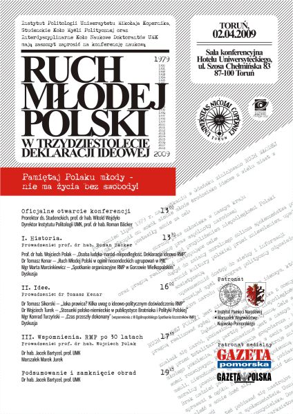 Konferencja naukowa „Ruch Młodej Polski. W trzydziestolecie Deklaracji Ideowej 1979–2009” – Toruń, 2 kwietnia 2009