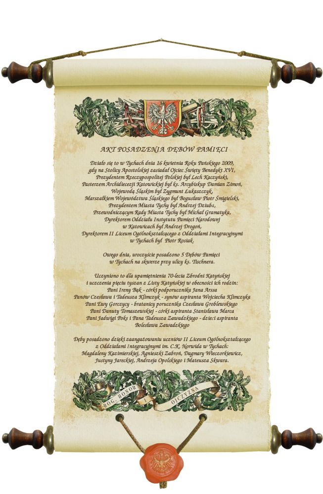 Społeczność II Liceum Ogólnokształcącego z Oddziałami Integracyjnymi im. C. K. Norwida Tychach oraz Instytut Pamięci Narodowej Oddział w Katowicach zorganizowały 16 kwietnia 2009 roku uroczystość sadzenia Dębów Pamięci na skwerze przy ulicy ks. Tischnera.
