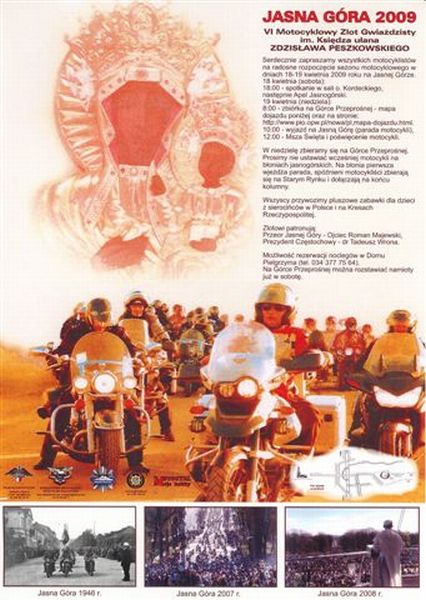 VI Zlot Gwiaździsty im. Księdza Ułana Zdzisława Peszkowskiego „JASNA GÓRA 2009” – zorganizowany w dniach 18–19 kwietnia 2009 roku przez Stowarzyszenie Międzynarodowy Rajd Katyński – uroczyście rozpoczął sezon motocyklowy. Podczas zlotu, w sobotę 18 kwietnia o godz. 18:00 w sali o. Kordeckiego na Jasnej Górze odbyło się spotkanie, podczas którego Sławomir Maślikowski (O/ IPN Katowice, Delegatura w Częstochowie) przedstawił działania Instytutu Pamięci Narodowej, a Leszek Rysak (IPN BEP) wygłosił wykład o zbrodniach sowieckich na Kresach Wschodnich Rzeczypospolitej. Pokazane zostały również filmy o Zbrodni Katyńskiej, o upamiętniającym jej ofiary Motocyklowym Rajdzie Katyńskim oraz o patronie zlotu – ks. prałacie Zdzisławie Peszkowskim. W trakcie spotkania z pięknym kresowym akcentem polskie pieśni patriotyczne zaśpiewał zespół z Żytomierza „Poleskie Sokoły”.