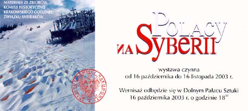 Dnia 16 października 2003 r. w Pałacu Sztuki - pl. Szczepański 4 w Krakowie odbyło się uroczyste otwarcie wystawy „Polacy na Syberii” - w 75 rocznicę powstania Związku Sybiraków. Ekspozycja przygotowana została przez Oddział Instytutu Pamięci Narodowej w Krakowie we współpracy ze Związkiem Sybiraków w Krakowie, a prezentowana jest dzięki uprzejmości Towarzystwa Sztuk Pięknych w Pałacu Sztuk Pięknych.