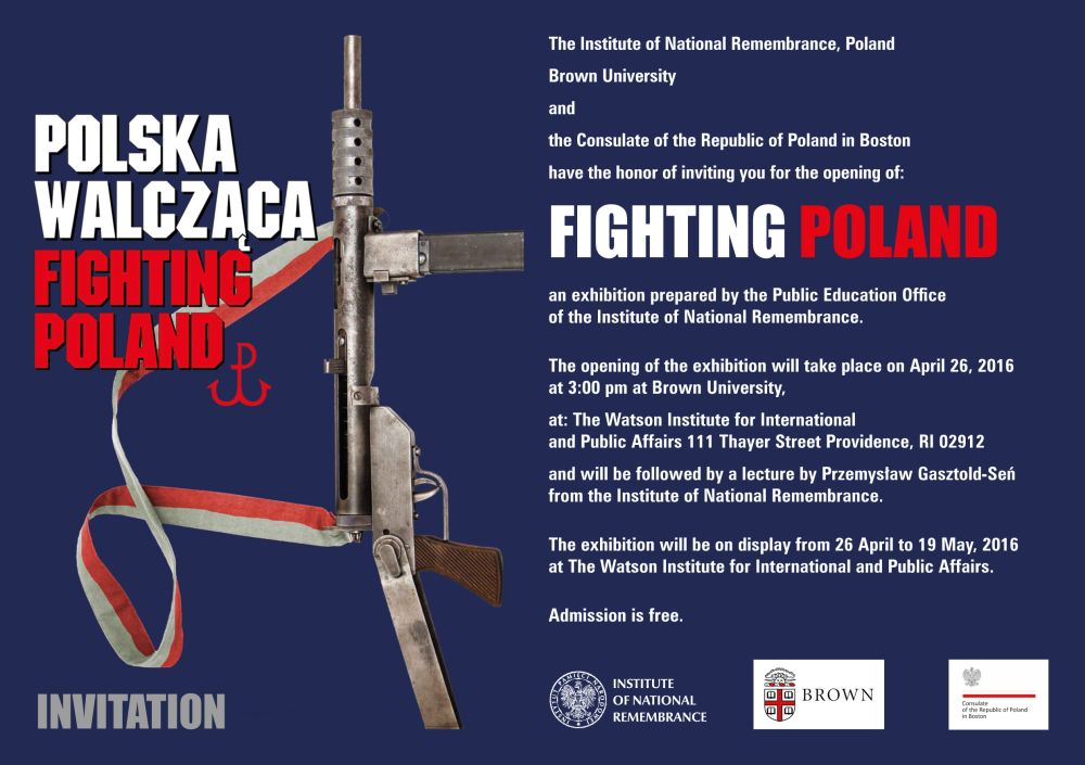 Instytut Pamięci Narodowej – Komisja Ścigania Zbrodni przeciwko Narodowi Polskiemu, Uniwersytet Brown i Konsulat RP w Bostonie serdecznie zapraszają na wystawę „Polska Walcząca”, przygotowaną przez Biuro Edukacji Publicznej IPN.