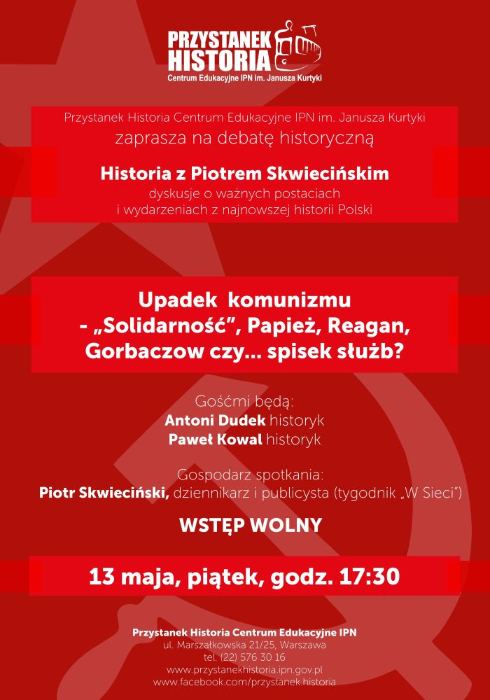 Upadek komunizmu – „Solidarność”, papież, Reagan, Gorbaczow czy... spisek służb? Jak to się stało, że padł system, którego upadku jeszcze dwa lata wcześniej nikt nie przewidywał? Będą o tym dyskutować historycy Antoni Dudek oraz Paweł Kowal, a rozmowę poprowadzi Piotr Skwieciński.