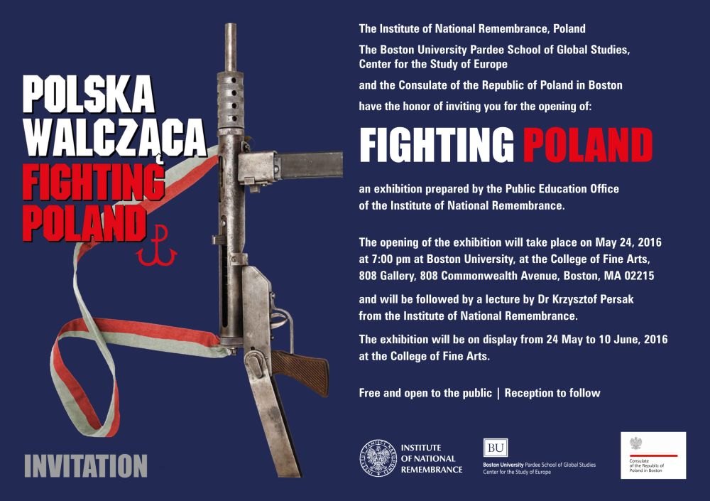 Instytut Pamięci Narodowej – Komisja Ścigania Zbrodni przeciwko Narodowi Polskiemu, Uniwersytet w Bostonie i Konsulat RP w Bostonie serdecznie zapraszają na wystawę „Polska Walcząca”, przygotowaną przez Biuro Edukacji Publicznej IPN.