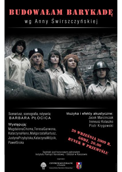 W ramach narodowych obchodów 70. rocznicy wybuchu II Wojny Światowej Centrum Kulturalne – jednostka samorządu woj. podkarpackiego, chcąc wyjść naprzeciw ogólnopolskiej idei edukacji i refleksji, zorganizowało w dniu 20 września 2009 r. o godz. 20.00 na przemyskim Rynku widowisko plenerowe „Budowałam Barykadę” wg Anny Świrszczyńskiej, reż. Barbara Płocica, w wykonaniu Grupy Teatralnej „Garderoba”. Spektakl pod honorowym patronatem Instytutu Pamięci Narodowej Oddział w Rzeszowie.