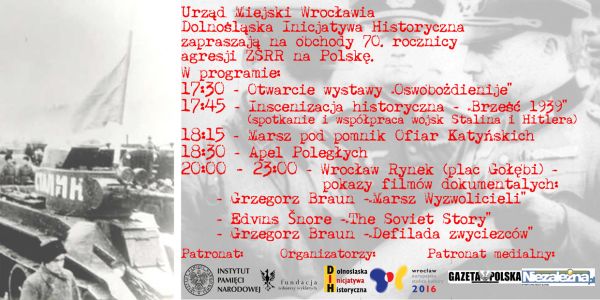 Urząd Miejski Wrocławia oraz Dolnośląska Inicjatywa Historyczna są organizatorami głównych uroczystości upamiętniających wydarzenia z 17 września 1939 r. we Wrocławiu. Instytut Pamięci Narodowej i Fundacja Żołnierzy Wyklętych są patronami obchodów, w ramach których odbyły się: