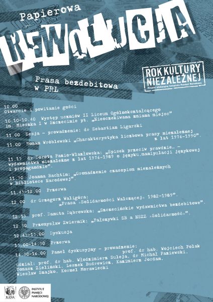 Instytut Pamięci Narodowej Oddział w Szczecinie zorganizował 20 października sesję popularnonaukową „»Papierowa rewolucja« – prasa bezdebitowa w PRL”.