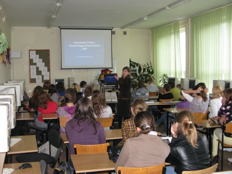 W dniach 6-8 października 2009 r. odbył się wykład Katarzyny Rembackiej, pt. „Zapomniany bohater – Generał August Emil Fieldorf »Nil«”. Prelekcja była skierowana do uczniów i odbyła się w następujących szkołach oraz instytucjach: