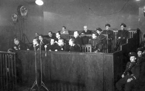 Działaczy WiN oskarżano głównie o prowadzenie działalności wywiadowczej na rzecz obcych mocarstw oraz terroryzowanie członków PPR. Natomiast PSL-owcom zarzucano świadomą współpracę z nielegalnym podziemiem. Szczegółowo zaplanowany przebieg rozprawy, a następnie wyrok, był w zasadzie potwierdzeniem zarzutów zamieszczonych w akcie oskarżenia. Prasa prześcigała się w napastliwych tytułach podkreślających „łączność PSL z podziemiem, „watażką” Andersem i obcymi agenturami”, czy demaskując WiN i PSL przy wspólnej robocie. Reporterzy świadomie przeinaczając wyjaśnienia składane w czasie procesu starali się dowieść, iż „PODZIEMIE JEST WROGIEM NIE TYLKO RZĄDU, LECZ I CAŁEGO NARODU. Dlatego musi być unieszkodliwione”. 10 września 1947 roku ogłoszono wyrok. Sąd, w składzie: przewodniczący – Romuald Klimowiecki oraz ławnicy: Józef Małachowski i Jan Zabłocki, skazał osiem osób na karę śmierci, osiem na długoletnie więzienie, a jedną osobę uniewinnił.