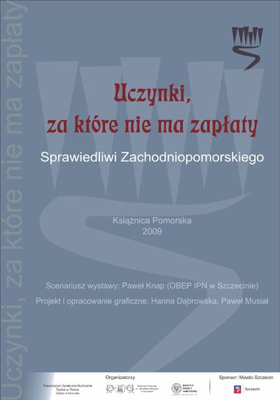 Instytut Pamięci Narodowej Oddział w Szczecinie, Książnica Pomorska i Towarzystwo Społeczno-Kulturalne Żydów Oddział w Szczecinie zapraszają na wystawę „Uczynki, za które nie ma zapłaty. Sprawiedliwi z Zachodniopomorskiego”.