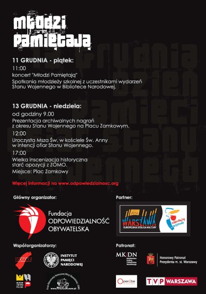 W piątek 11 grudnia w ramach akcji „Młodzi pamiętają”, organizowanej przez Fundację Odpowiedzialność Obywatelska, odbyło się w Warszawie spotkanie z opozycjonistami przeznaczone dla uczniów liceów oraz koncert fortepianowy „Młodzi pamiętają”.