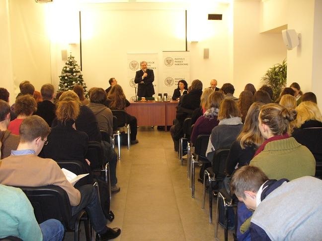 Zgromadzoną młodzież powitał prof. Jerzy Eisler, dyrektor warszawskiego oddziału IPN, który następnie wystąpił z wykładem prezentującym genezę powstania Instytutu Pamięci Narodowej oraz zakres jego działalności. Natomiast dr Paweł Kosiński z Oddziałowego Biura Edukacji Publicznej IPN w Warszawie wygłosił referat w języku niemieckim na temat znajdujących się w IPN materiałów archiwalnych dotyczących wojny i okupacji. Obydwa wystąpienia spotkały się z dużym zainteresowaniem. Wykładowcy odpowiadali na liczne pytania gości.
