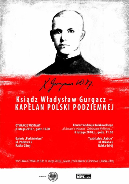 Oddział Instytutu Pamięci Narodowej w Krakowie oraz „Stowarzyszenie NZS 1980” zapraszają na wystawę „Ks. Władysław Gurgacz – kapelan Polski Podziemnej”, której otwarcie odbyło się 8 lutego 2010 r. w galerii „Pod Aniołem” w Rabce Zdroju przy ul. Parkowej 5.