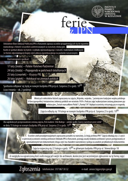 Zgłoszenia – telefoniczne: 017 867 30 32, e-mail: zenon.fajger@ipn.gov.pl