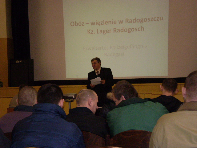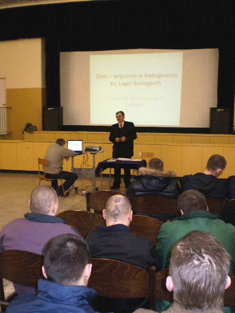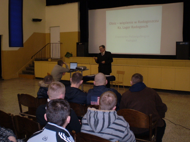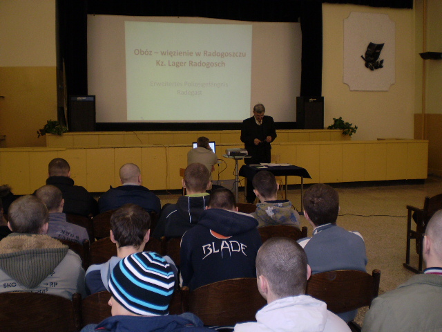 W efekcie porozumienia o współpracy, zawartego w 2008 r. między Oddziałem Instytutu Pamięci Narodowej w Łodzi, Zakładem Karnym w Sieradzu oraz Klubami Historycznymi im. gen. Stefana Roweckiego „Grota” w Kaliszu i w Sieradzu, w dniu 5 marca br. w sieradzkim Zakładzie Karnym odbył się wykład pt. „Niemiecki obóz – więzienie w Łodzi na Radogoszczu”. Wystąpienie na ten temat przygotował Antoni Galiński, pracownik Oddziału IPN w Łodzi. Tematyka wystąpienia związana była z przypadającą w tym roku 65. rocznicą wymordowania ok. 1500 więźniów Radogoszcza.