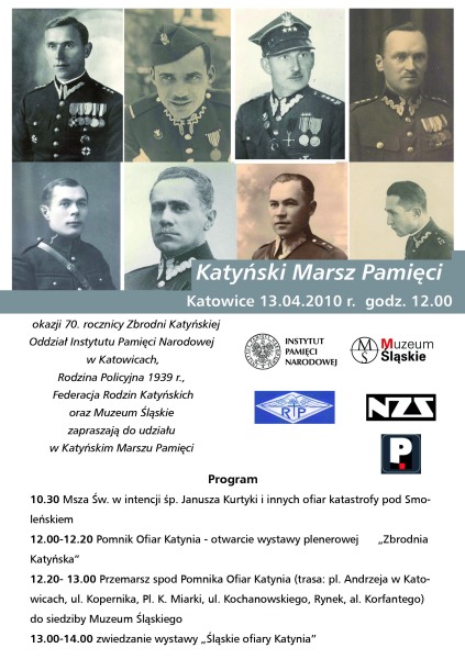 W Marszu Pamięci wzięło udział blisko tysiąc osób, m.in. wojewoda śląski Zygmunt Łukaszczyk, dyrektor Oddziału IPN w Katowicach dr Andrzej Drogoń oraz córka zmarłego prezesa NBP Sławomira Skrzypka. Uczestnikom marszu rozdano trzysta biało-czerwonych flag z czarnymi wstążkami, ufundowanych przez wojewodę Z. Łukaszczyka. W przemówieniu przed rozpoczęciem marszu dyrektor Oddziału IPN w Katowicach dr Andrzej Drogoń stwierdził: „Chciejmy wierzyć, że jest to krok do wielkiego narodowego odrodzenia, do pojednania między narodami, do zamknięcia tej jakże trudnej, okrutnej księgi, jaką zgotował narodowi polskiemu i wielu narodom świata sowiecki totalitaryzm i że będzie to zamknięta księga, do której musimy sięgać, pamiętać o tym wszystkim, co w niej zapisane. (...) Wierzmy, że owa ofiara życia elit narodu (...) to właśnie źródło, które powinno wszystkim uzmysłowić, że taka będzie ojczyzna i taki będzie nasz naród, jakim go sami zbudujemy”.