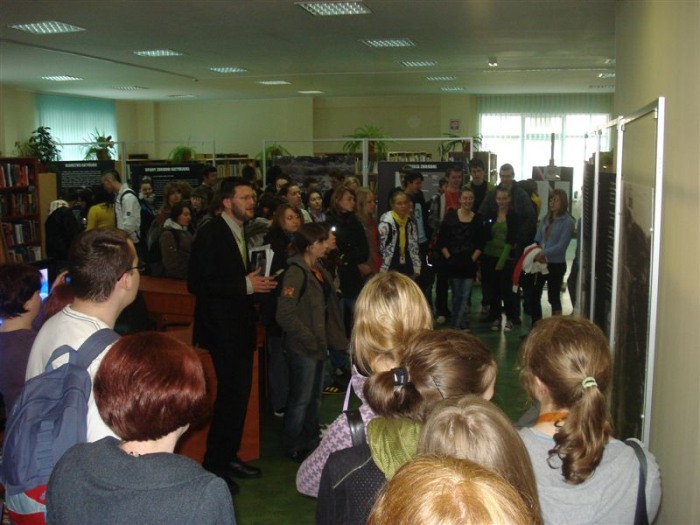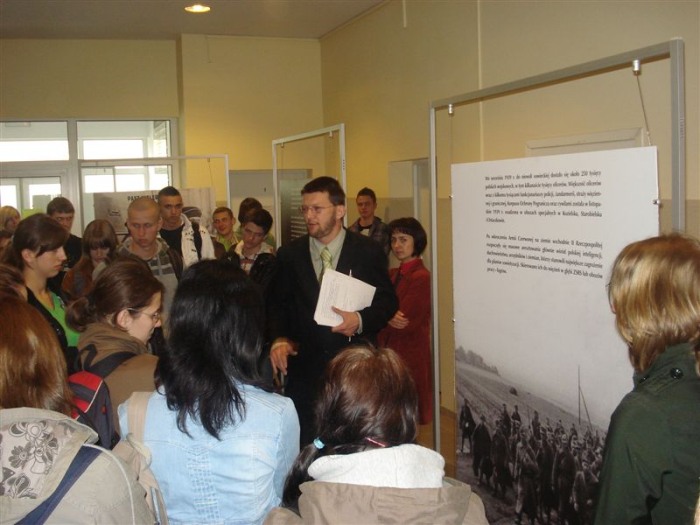 Na wernisaż wystawy przybyli mieszkańcy Tucholi oraz uczniowie trzech klas miejscowych szkół średnich. Dr Jarosław Tarasiński szczegółowo omawiał problematykę sowieckiego ludobójstwa na jeńcach obozów w Kozielsku, Ostaszkowie i Starobielsku. Zbrodnia Katyńska symbolizuje okrucieństwo sowieckiego totalitaryzmu, który ze szczególną bezwzględnością niszczył polskość. Wszystkie osoby zainteresowane wernisażem mogły poznać cele polityki Stalina i dowiedzieć się, które warstwy społeczeństwa polskiego spotkały największe cierpienia.