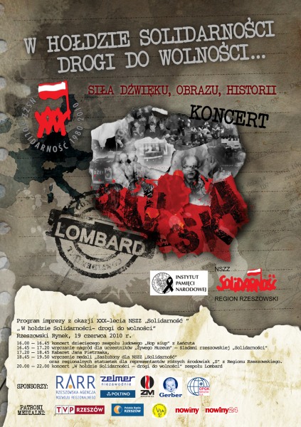 - 20.00 – 22.00 Koncert zespołu Lombard „W hołdzie Solidarności – drogi do wolności”