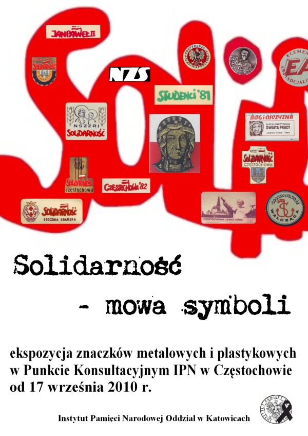 Oddział Instytutu Pamięci Narodowej w Katowicach zaprasza na otwarcie stałej ekspozycji w siedzibie Ośrodka Zamiejscowego IPN w Częstochowie, zatytułowanej „Solidarność – mowa symboli”. Otwarcie wystawy miało miejsce 17 września 2010 r. o godz. 11.00 przy ul. Łódzkiej 8/12 w Częstochowie.