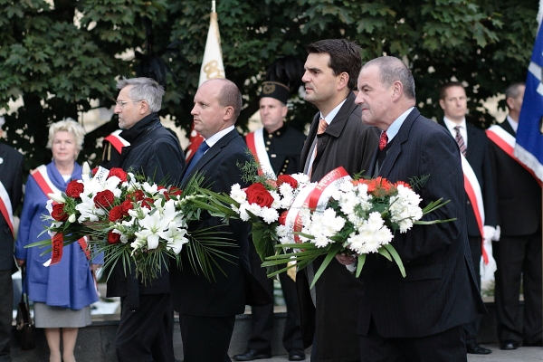 Na zakończenie uczestnicy obchodów złożyli kwiaty i wieńce pod pomnikiem.