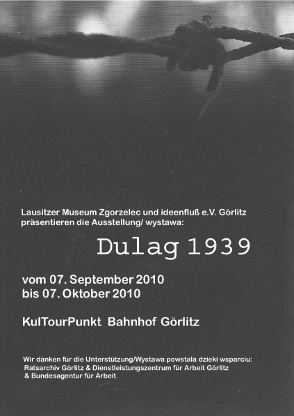 Stowarzyszenie ideenfluß e.V. Görlitz wraz z Muzeum Łużyckim ze Zgorzelca zorganizowało wystawę „Dulag 1939” jako dokument poświęcony polskim żołnierzom kampanii wrześniowej. Wzięta w pierwszych dniach wojny do niewoli grupa polskich żołnierzy została 7 września 1939 roku przetransportowana na roboty przymusowe do Görlitz. Do ich zadań należała między innymi budowa obozu Stalag VIII A pod Zgorzelcem. Uwiecznione na archiwalnych fotografiach wydarzenia oraz osoby mogą stanowić jedyne źródło pamięci dla niektórych rodzin w Polsce o losach ich bliskich. Zapraszamy wszystkich do odwiedzenia wystawy. Uroczyste otwarcie nastąpi 7 września br. o godz. 17:00 w sali wystawowej KulTourPunkt na dworcu kolejowym w Görlitz. Wystawa będzie czynna w dni robocze (pon.-czw.) do końca września. Realizacja wystawy stała się możliwa dzięki uprzejmości i w oparciu o historyczne fotografie ze zbiorów Stadtarchiv Görlitz.