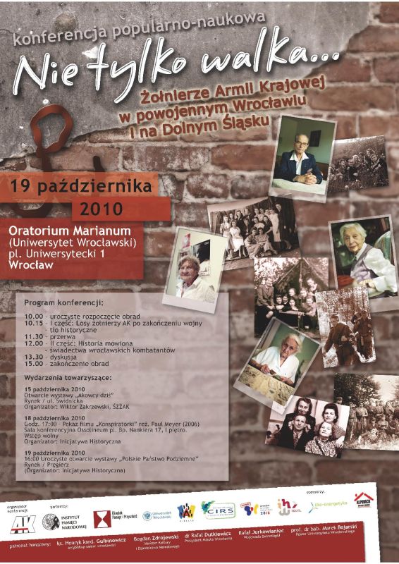 Konferencja popularnonaukowa „Nie tylko walka… Żołnierze Armii Krajowej w powojennym Wrocławiu i na Dolnym Śląsku” – Wrocław, 19 października 2010