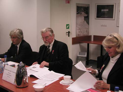 Foto 1. (od lewej) Michał Bieniasz - Prezes Kongresu Polaków w Szwecji, Ludomir Garczyński - Gąssowski, Sekretarz Kongresu, dr Bożena Łojek, przewodnicząca Niezależnego Komitetu Historycznego Badania Zbrodni Katyńskiej.