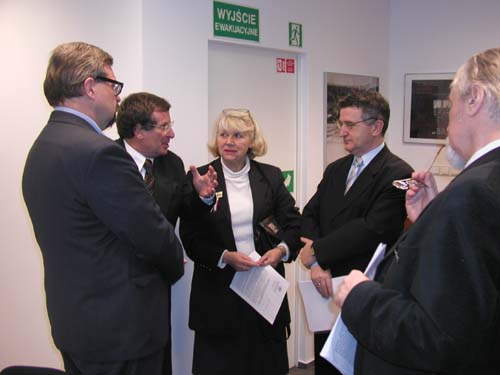 Foto 2. Ambasador Królestwa Szwecji w Polsce Mats Staffansson, prof. Witold Klesza, dr Bożena Łojek, prof. Leon Kieres.