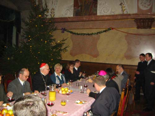 Po zwiedzeniu opactwa, w jego sali purpurowej miała miejsce podniosła uroczystość dzielenia się uczestników spotkania opłatkiem. W czasie jej trwania dyrektor oddziału prof. Włodzimierz Suleja wyraził Ks. Henrykowi Kardynałowi Gulbinowiczowi wdzięczność za dotychczasową życzliwość i pomoc oraz przekonanie o dalszej owocnej współpracy.