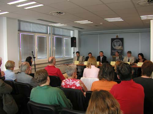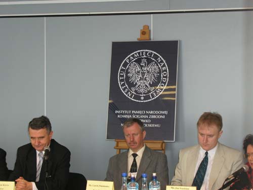 Podczas spotkania Prezes IPN, Prof. Leon Kieres wraz z dyrektorami trzech pionów przedstawił statutowe obowiązki oraz bieżące działania Instytutu, następnie w dyskusji poruszono tematy prowadzonych śledztw i badań naukowych oraz spraw związanych z organizacją i dostępem do materiałów archiwalnych.