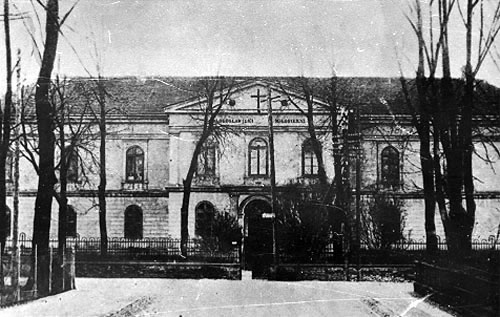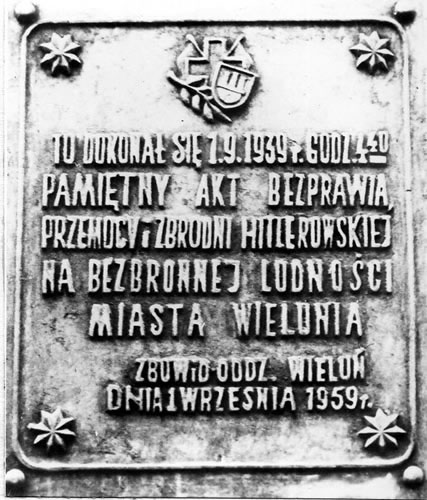 Plan sytuacji położenia Szpitala Wszystkich Świętych w Wieluniu Tablica pamiątkowa wmurowana na gmach studium wychowania przedszkolnego w Wieluniu, gdzie w dniu 1 września 1939 roku znajdował się Szpital Wszystkich Świętych