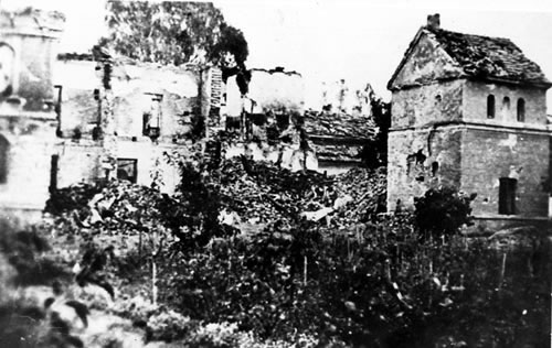 Ruiny Szpitala Wszystkich Świętych w Wieluniu po zbombardowaniu go przez lotnictwo hitlerowskie w dniu 1 września 1939 - widok od strony zachodniej Zofia Machalak, zamordowana w dniu 1 września 1939 r. w Wieluniu przez lotników hitlerowskich