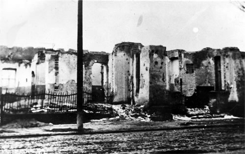 Ruiny Szpitala Wszystkich Świętych w Wieluniu po zbombardowaniu go przez lotnictwo hitlerowskie w dniu 1 września 1939