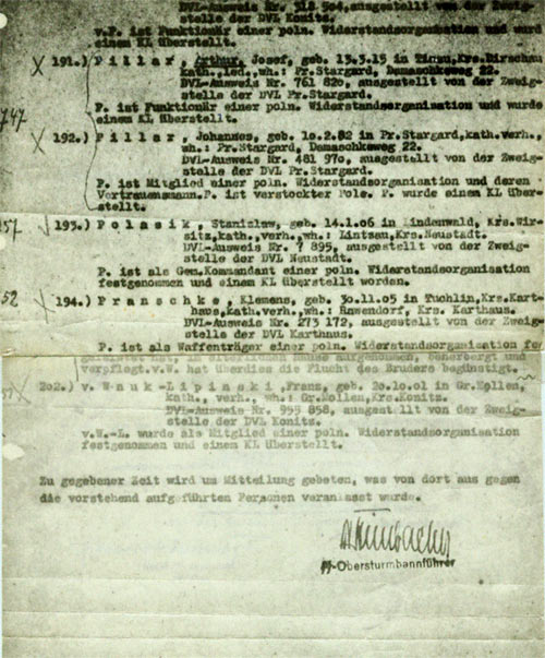 Niemiecka charakterystyka ojca i syna Pillarów podkreśla, że są „zaciętymi Polakmi” i trzeba ich umieścić w obozie koncentracyjnym.