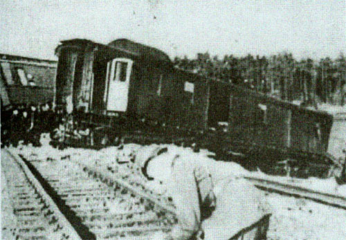 Niemiecki pociąg relacji Königsberg-Berlin po akcji partyzantów z TOW „Gryf Pomorski” 9 VI 1942 r.