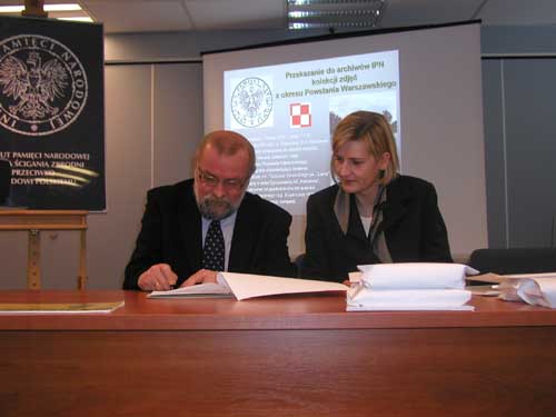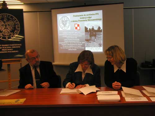 Umowa ze strony Instytutu została podpisana przez Bohdana Marciniaka, Dyrektora Generalnego IPN. Podpisy w imieniu ofiarodawców złożyły: Dorota Fatima Wolniarska-Witek – spadkobierczyni Lecha Gąszewskiego oraz Anna Kacprzak i Elżbieta Starościk, jako spadkobierczynie Eugeniusza Widlickiego. Podczas uroczystości Instytut reprezentował również Janusz Kuligowski, Naczelnik Wydziału Gromadzenia i Opracowywania BUiAD.