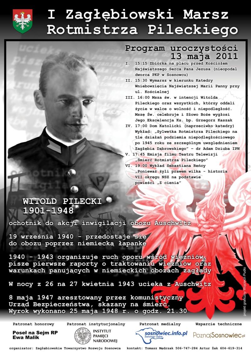13 maja 2011 r. w Sosnowcu odbył się I Zagłębiowski Marsz Rotmistrza Pileckiego. Organizatorem marszu było Zagłębiowskie Towarzystwo Rozwoju Sosnowca. Impreza odbyła się pod patronatem Oddziału Instytutu Pamięci Narodowej w Katowicach.