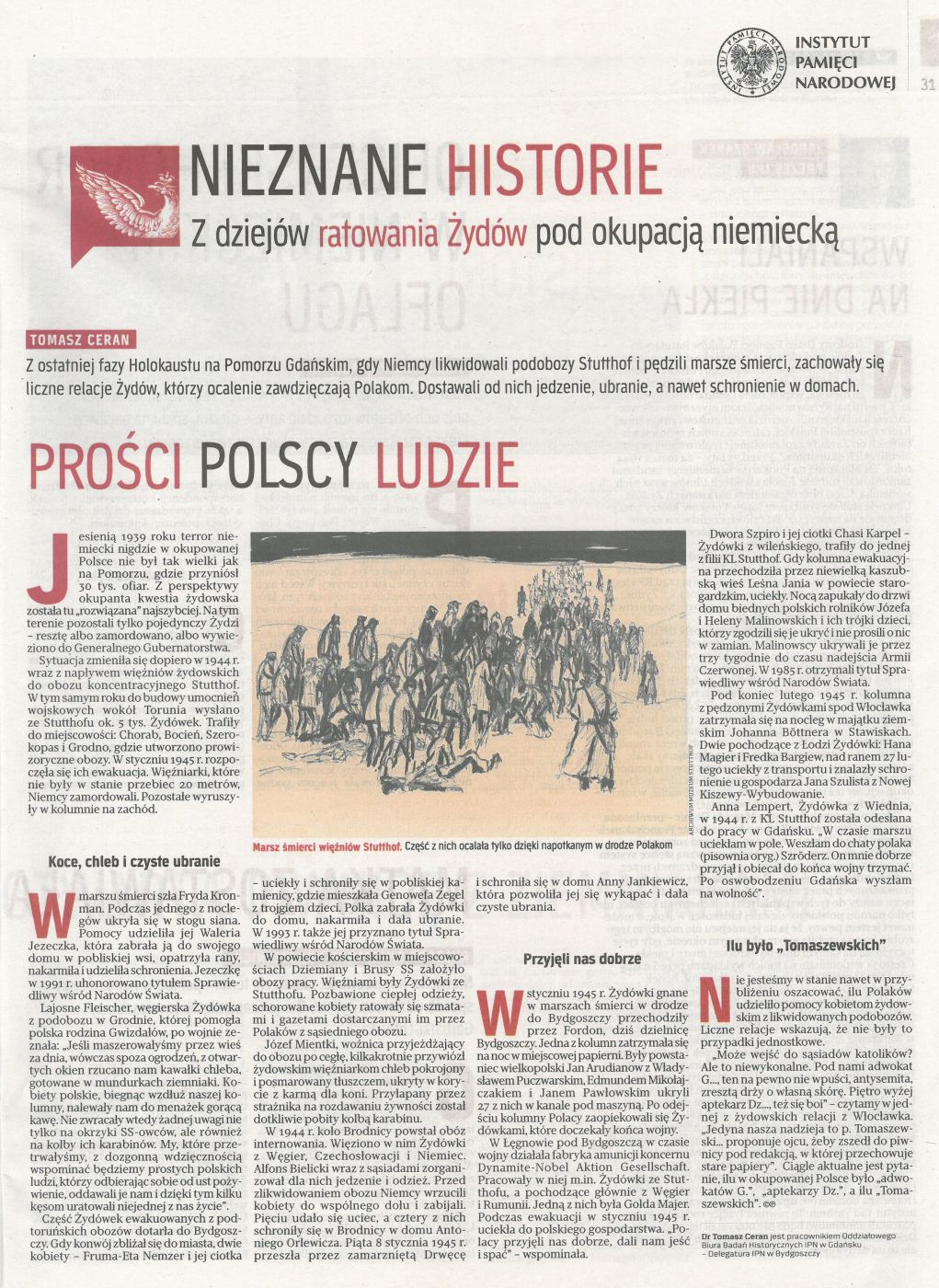 23 marca 2019 – dodatek do „Rzeczpospolitej” zatytułowany „Nieznane historie. Z dziejów ratowania Żydów pod okupacją niemiecką”- 24 marca 2019 – centralne uroczystości z okazji Narodowego Dnia Pamięci Polaków ratujących Żydów pod okupacją niemiecką