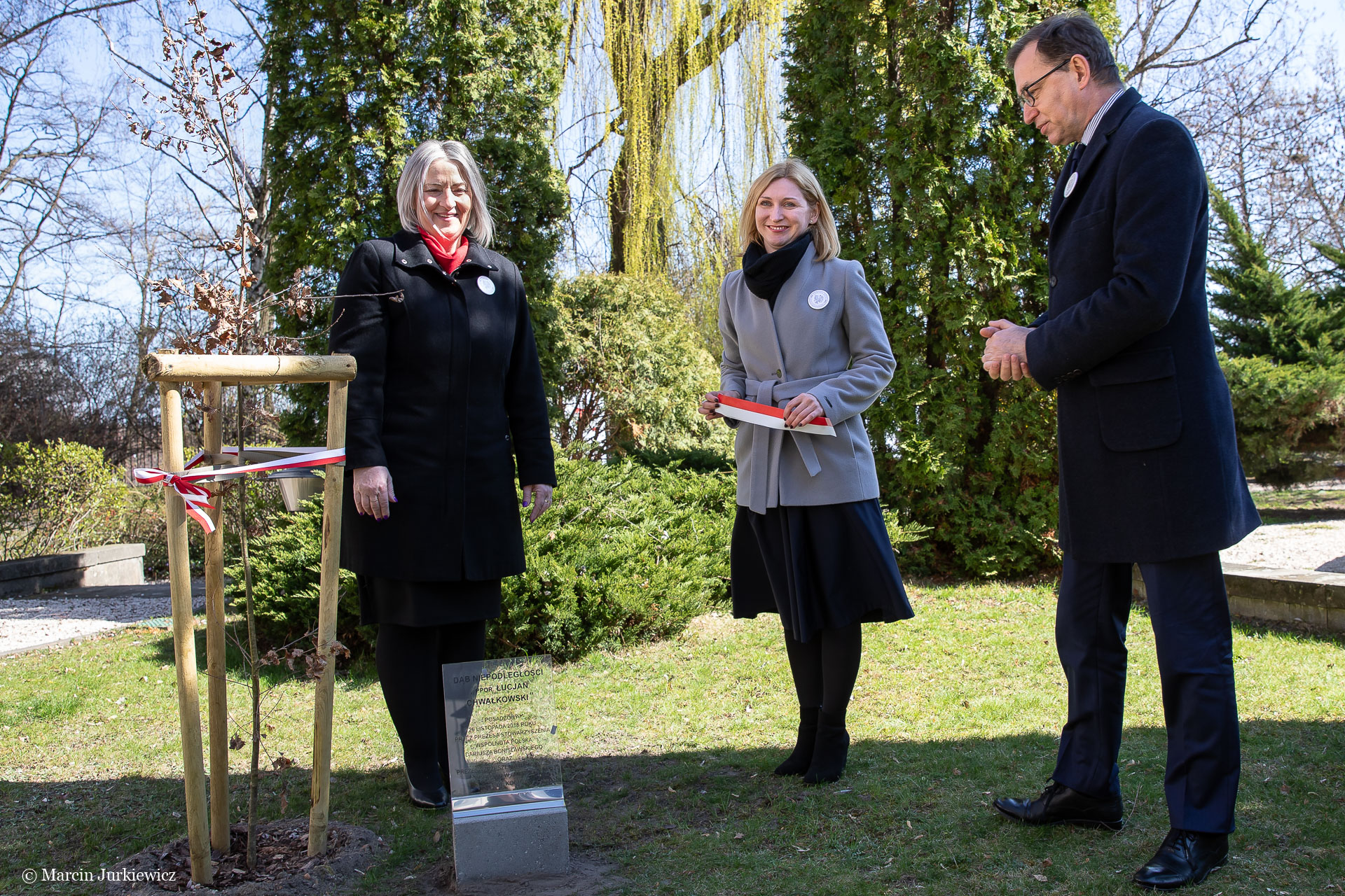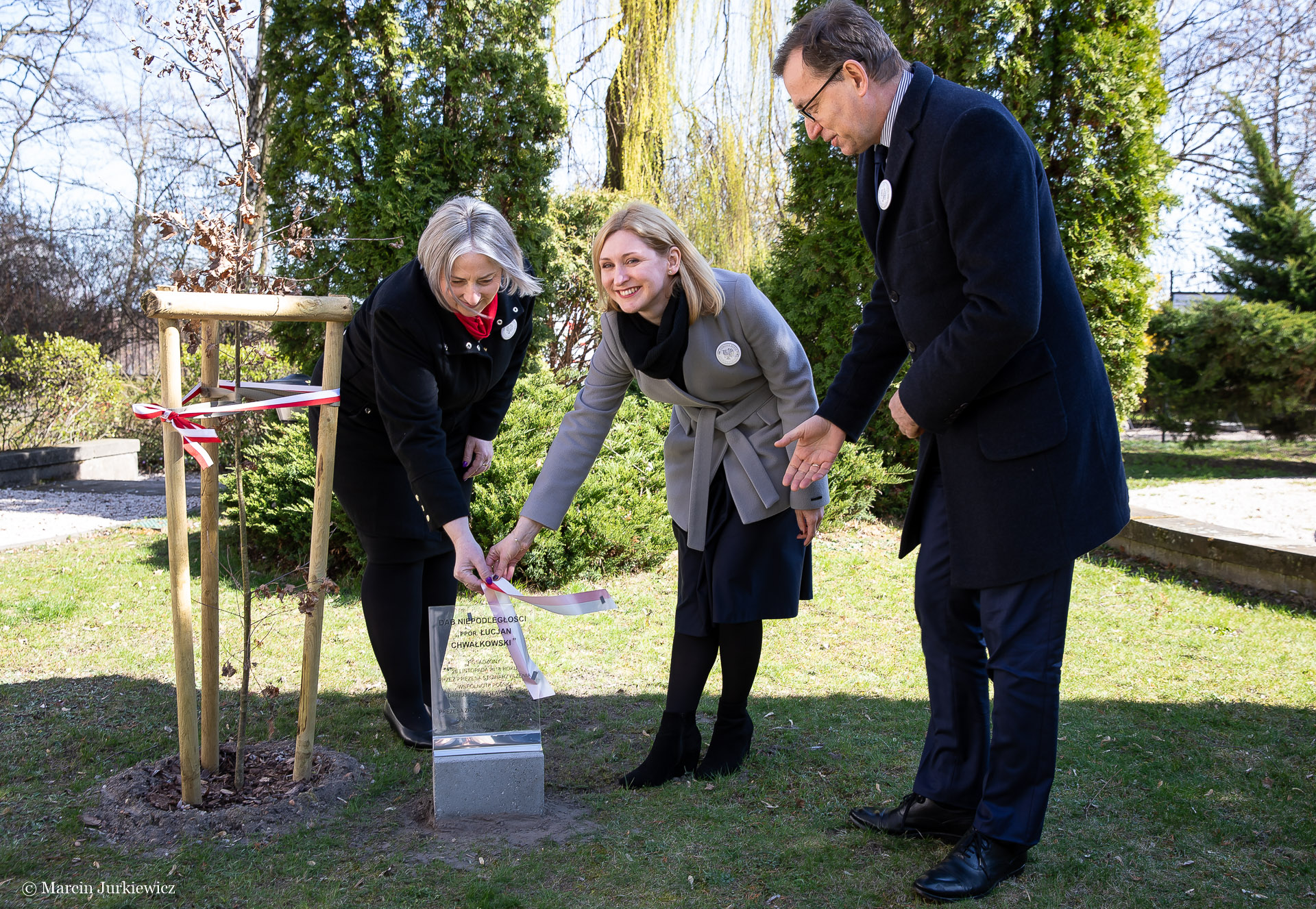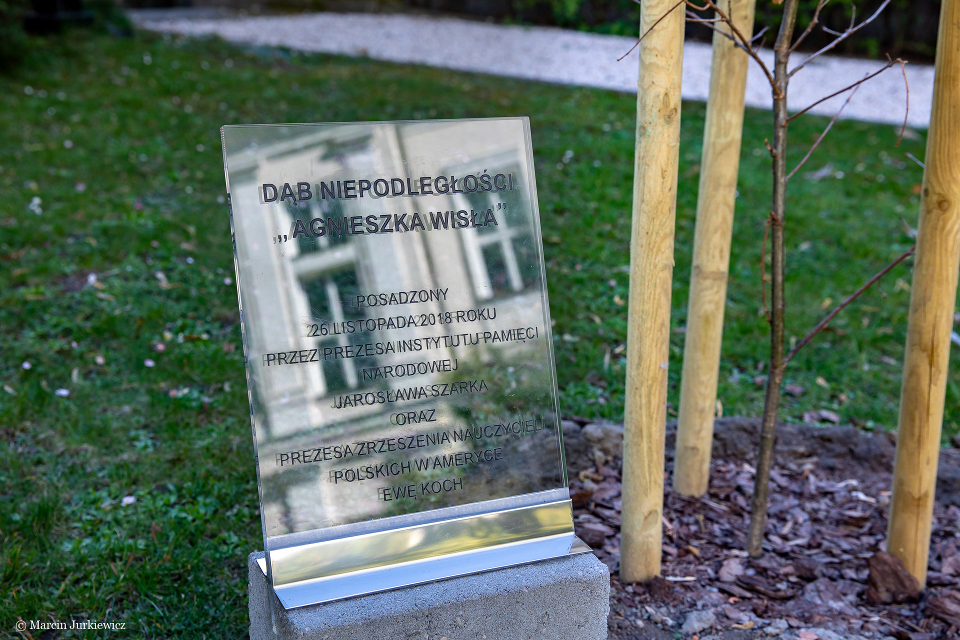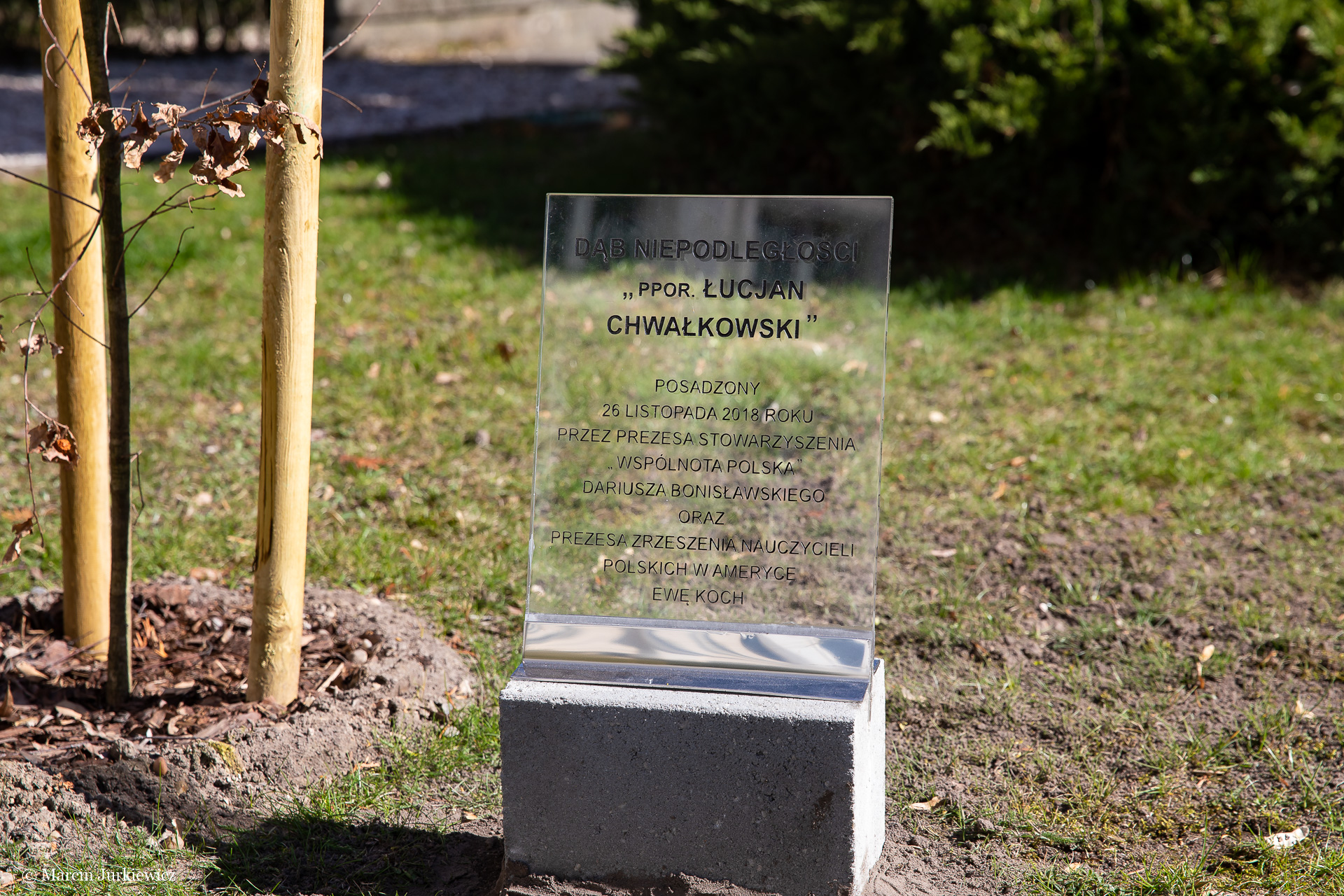 2 kwietnia 2019 r., przy siedzibie Wspólnoty Polskiej przy Krakowskim Przedmieściu 64 w Warszawie (Dom Polonii), zostały odsłonięte tabliczki przy Dębach Niepodległości, które zostały posadzone 26 listopada 2018 r. Dęby otrzymały wówczas imiona: Agnieszka Wisła i ppor. Łucjan Chwałkowski.