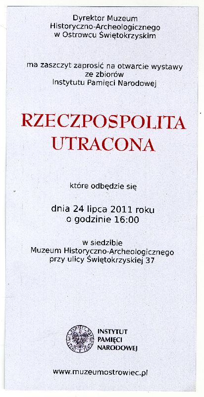 24 lipca 2011 r. w siedzibie Muzeum Historyczno-Archeologicznego w Ostrowcu Świętokrzyskim (ul. Świętokrzyska 37) otwarta została wystawa „Rzeczpospolita utracona”, przygotowana przez historyków z Biura Edukacji Publicznej IPN w Warszawie.