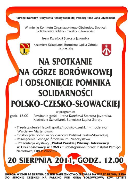 Uroczyste odsłonięcie pomnika Solidarności Polsko-Czesko-Słowackiej – Góra Borówkowa, 20 sierpnia 2011